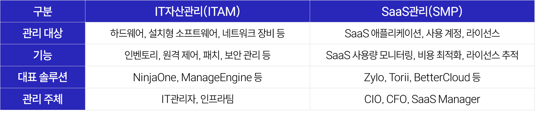 IT자산관리(ITAM)와 SaaS 관리(SMP) 차이
